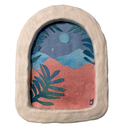 Lisätiedot (tekniikka): Vesiväri paperille, savi kehykset